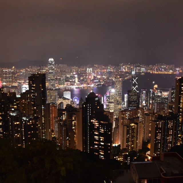 As the dark of night falls over Hong Kong